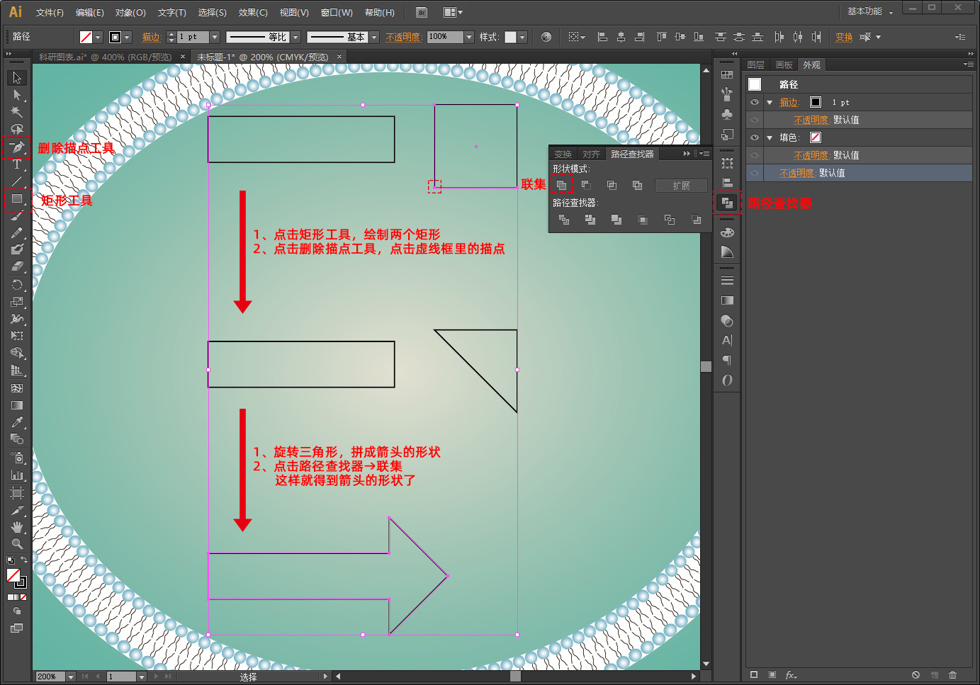 用删除描点工具,把正方形变成一个三角形,合并成一个箭头