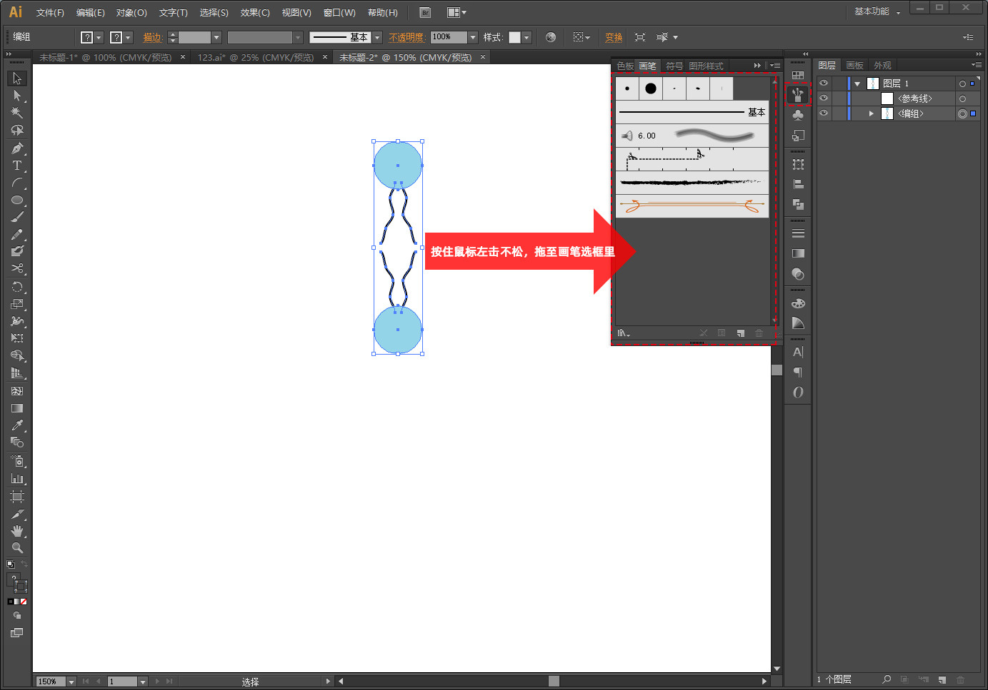 全选图形,点击鼠标右键→编组,按住鼠标左键不松,整体拉到笔画界面里