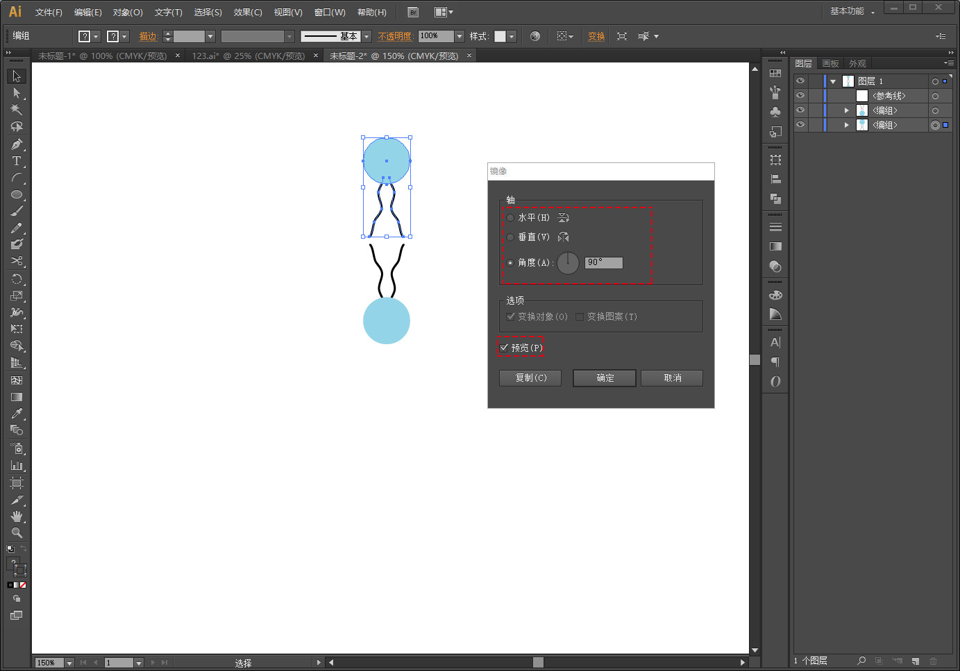 点击鼠标右键→变换→对称→复制 做一个对称结构