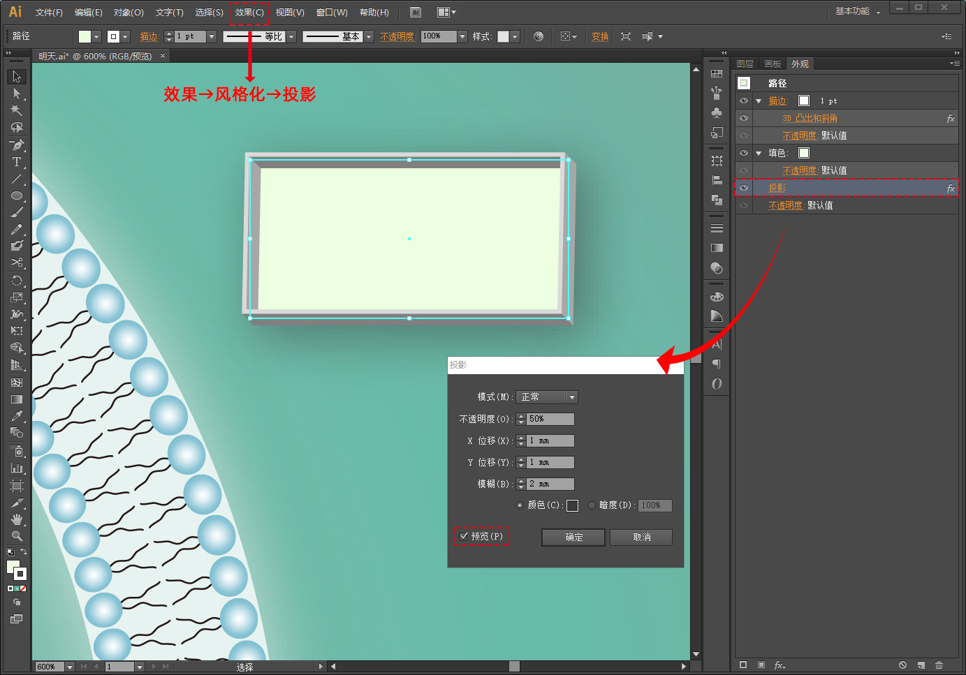 加一个投影会变得更加立体,效果→风格化→投影